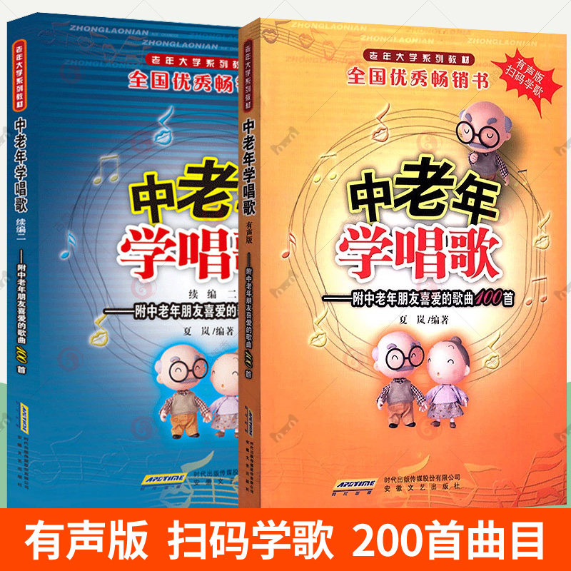 赠音频】中老年学唱歌+续编全2册中老年朋友喜爱的歌曲200首 老年大学音乐教材练声音乐理论练习曲谱乐谱零基础学唱歌教程入门书籍