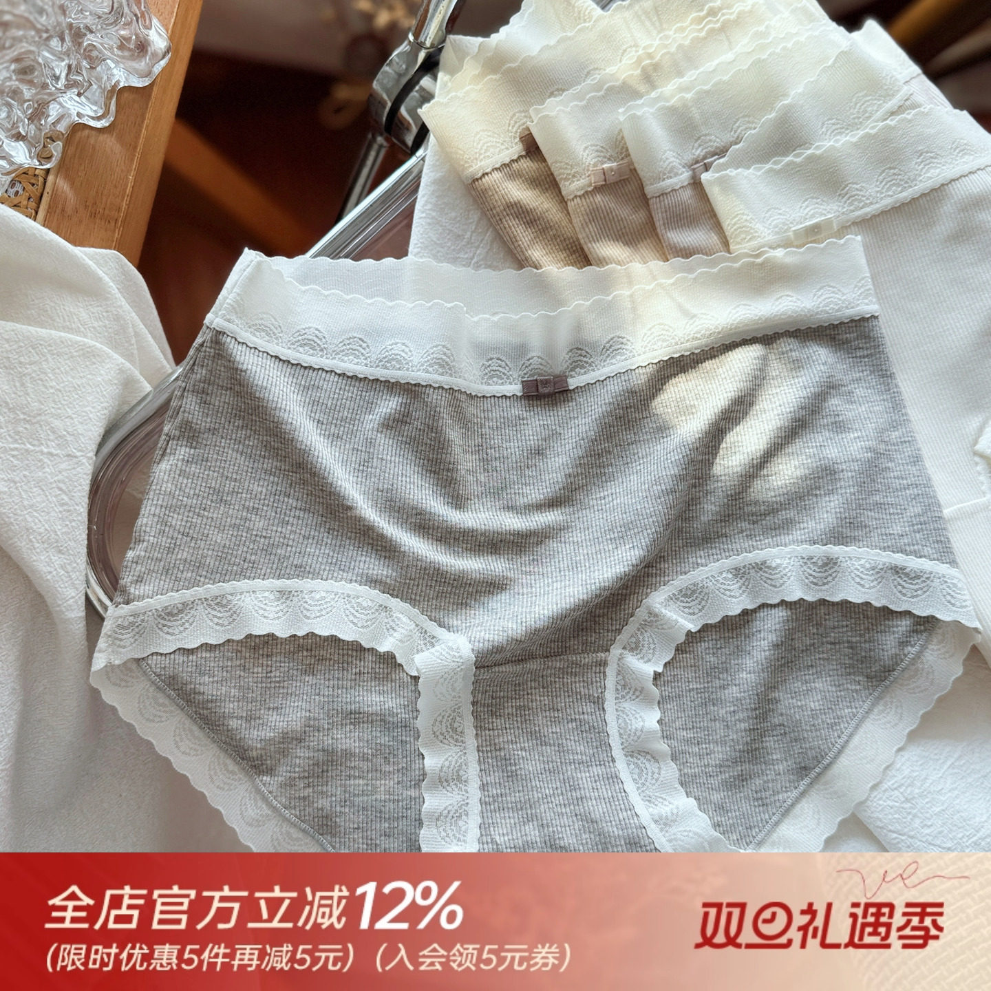 蕾丝无痕内裤女生性感纯欲纯色中腰透气抗菌莫代尔裆少女网纱春夏