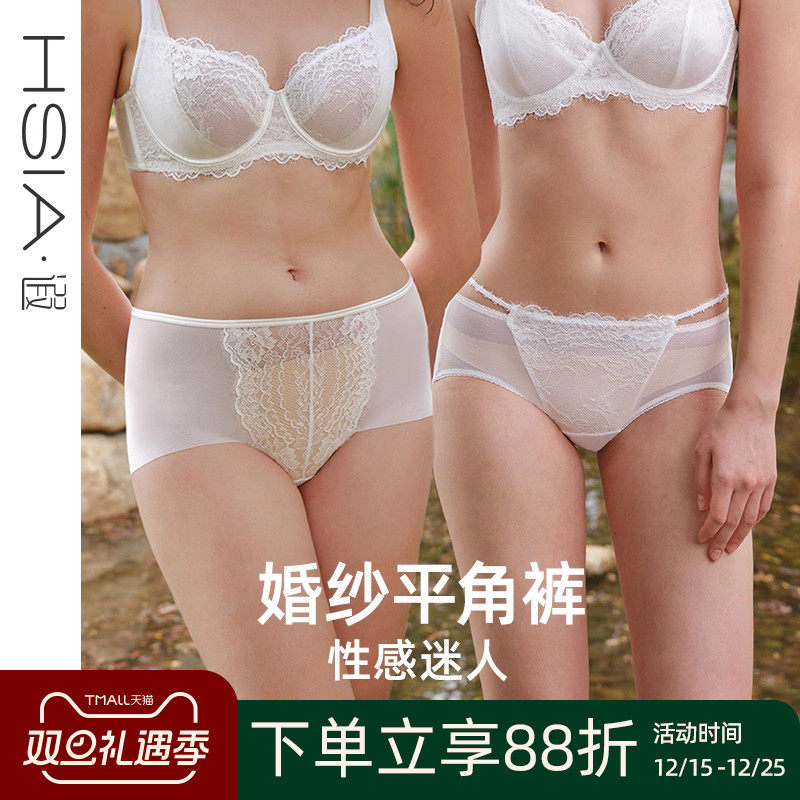 【叛逆新娘-白蔷薇】遐婚纱平角裤白色性感绑带蕾丝无痕内裤女夏