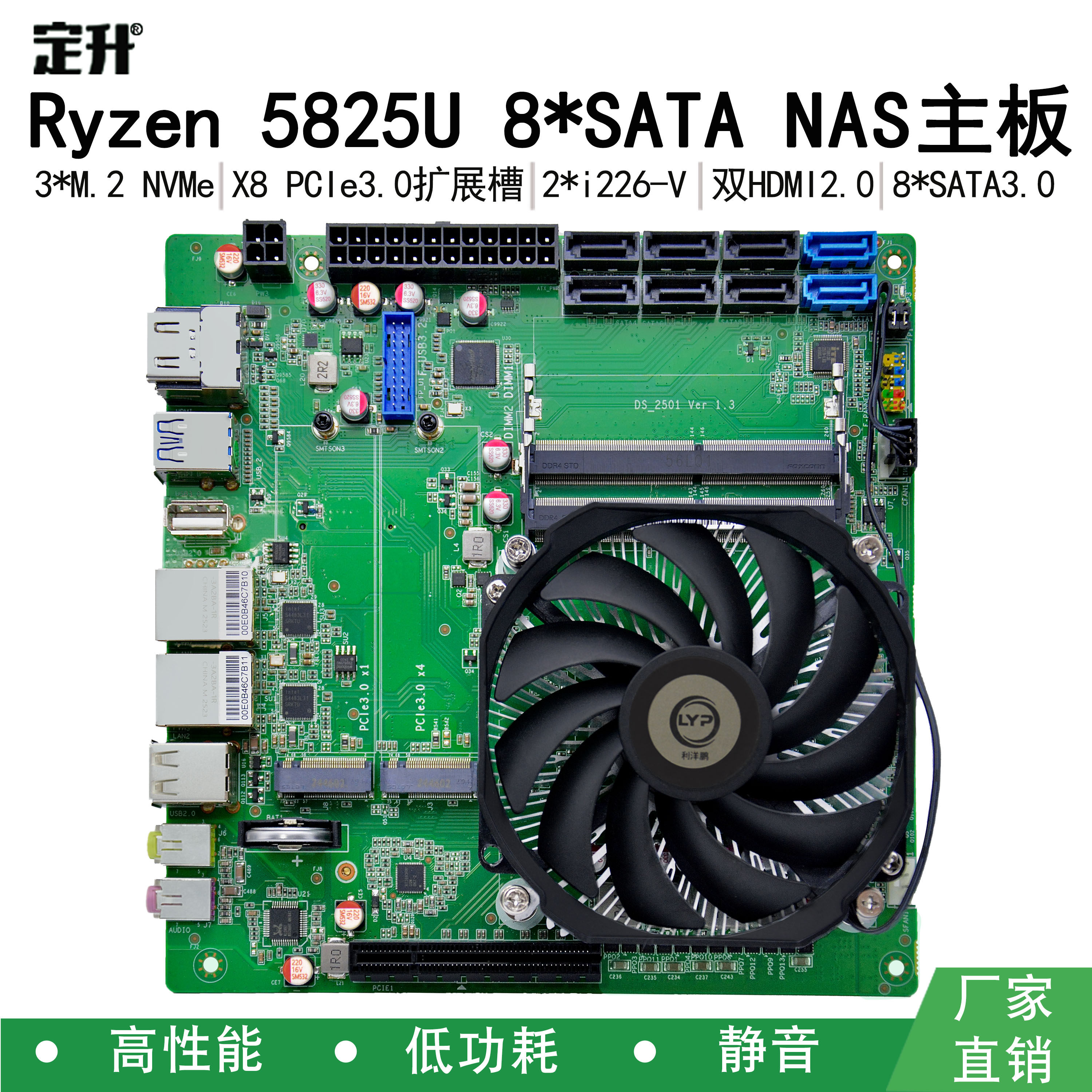 定升 AMD锐龙5825U可扩万兆8盘位NAS主板 机器视觉工控ITX主板
