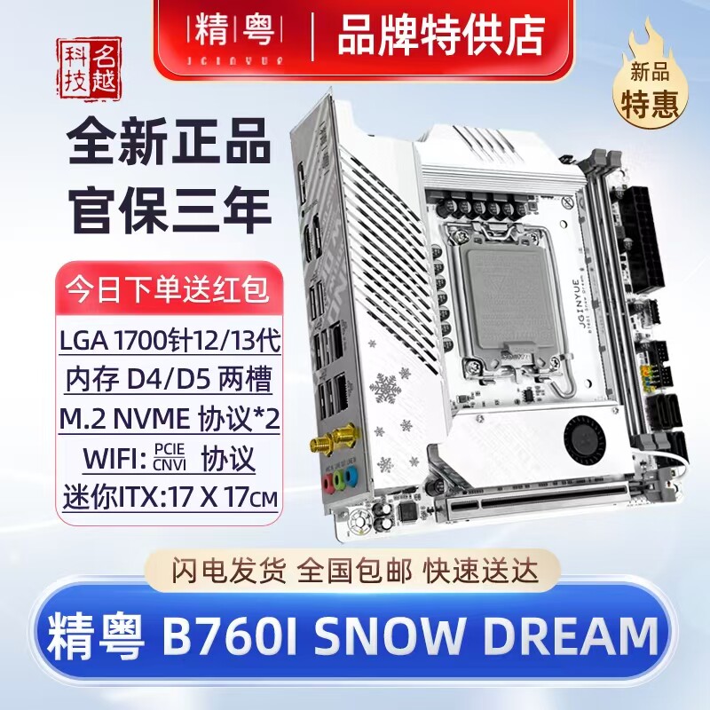 【正品】精粤B760itx主板D5台式1700针CPu迷你H610D4白色wifi电脑