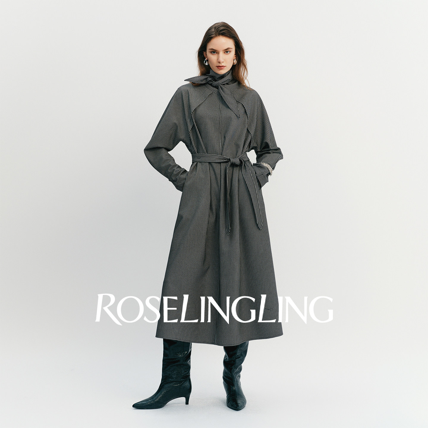 ROSELINGLING格外时髦篙智复古格纹冬季保暖堆堆高领可收腰连衣裙