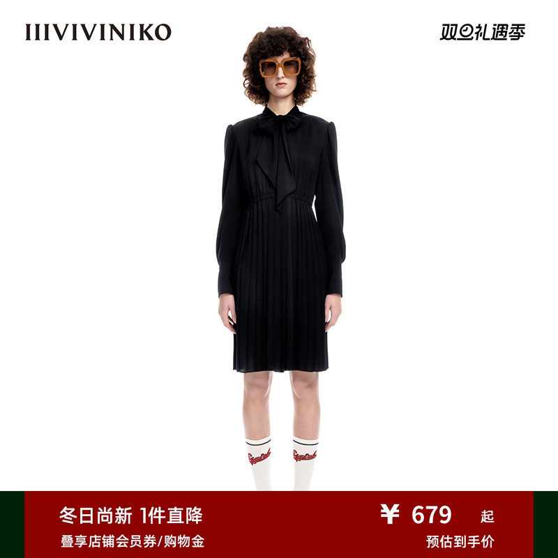 IIIVIVINIKO春夏新品简约学院风长袖百褶收腰连衣裙女M310611139A