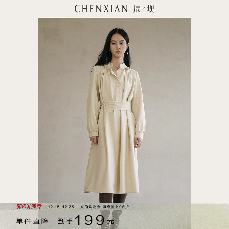 tanni新款通勤百搭日常复古立领X版收腰连衣裙TM31DR041B