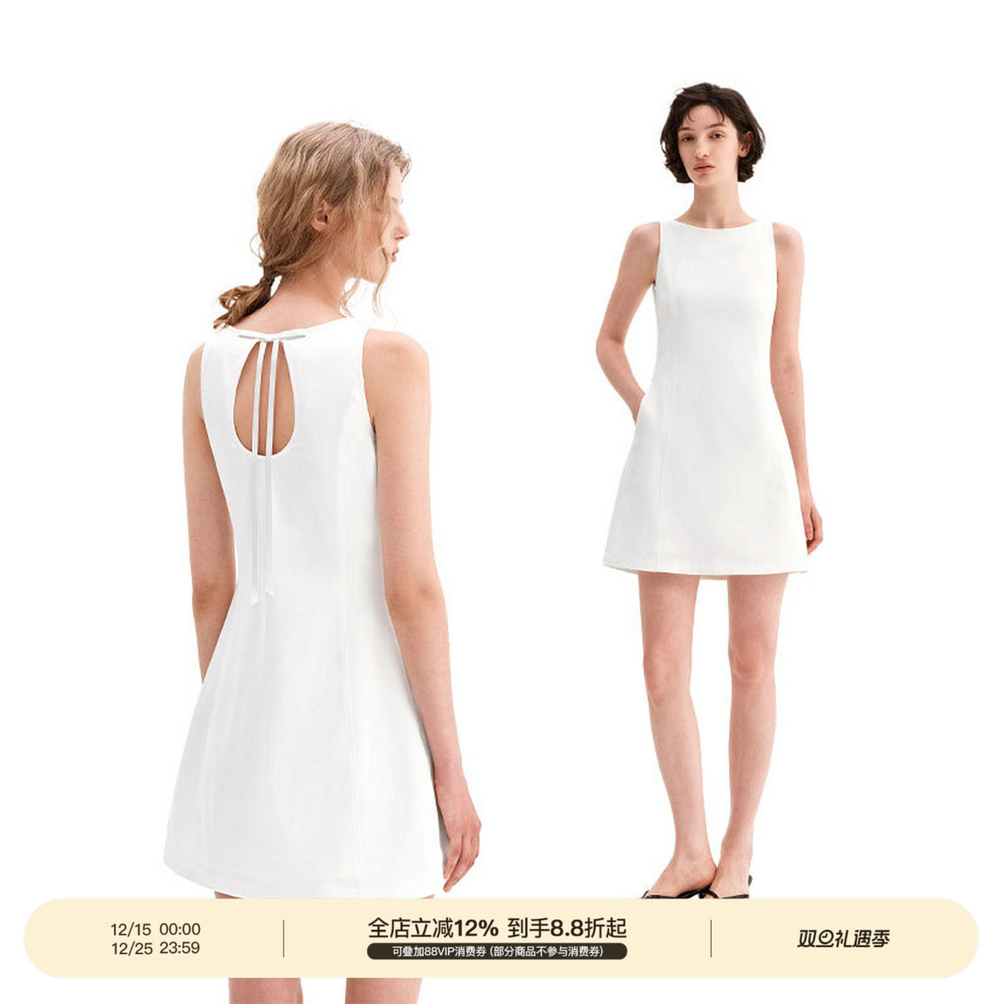 PUKI 原创经典后背镂空蝴蝶结直角肩亲肤日常修身收腰连衣裙