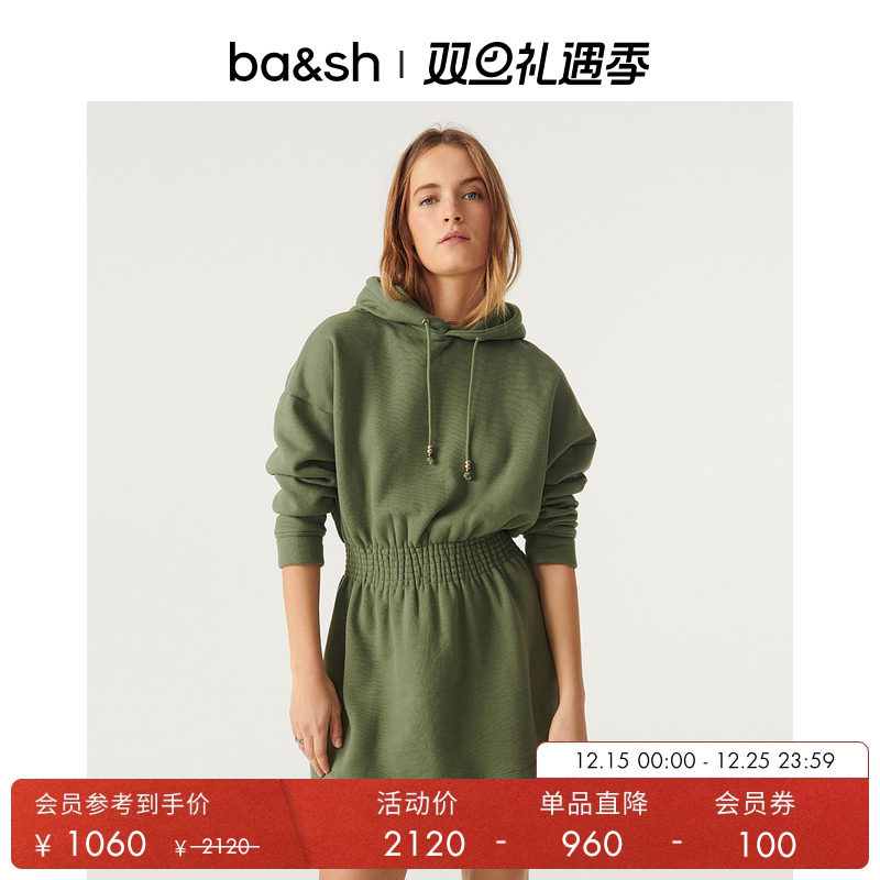 bash早秋法式简约休闲女装裙子卫衣裙连帽收腰连衣裙短裙1E23DITS