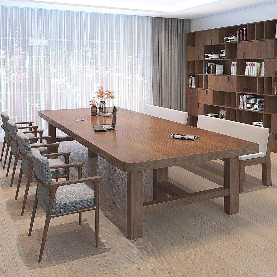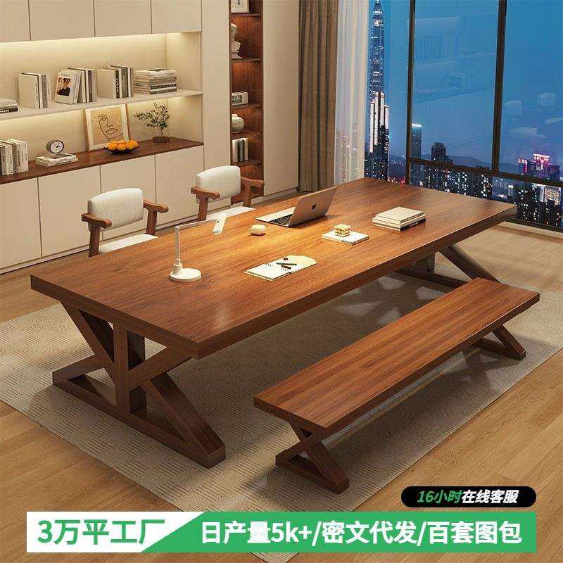 loft实木洽谈桌椅组合简约现代休闲办公会议桌工作台长条桌6人位
