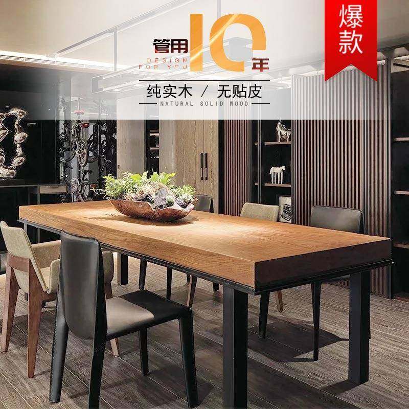 北欧现代简约家用客厅长桌全实木大板桌办公会议桌学习书桌工作台