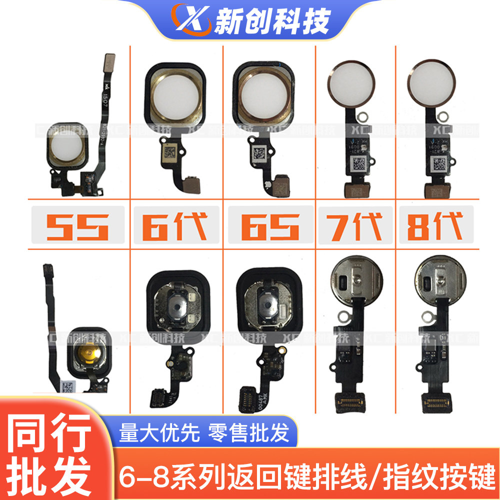 适用苹果iPhone6返回按键4代8代4s5s6P6s6sp7代7plus8P指纹home键
