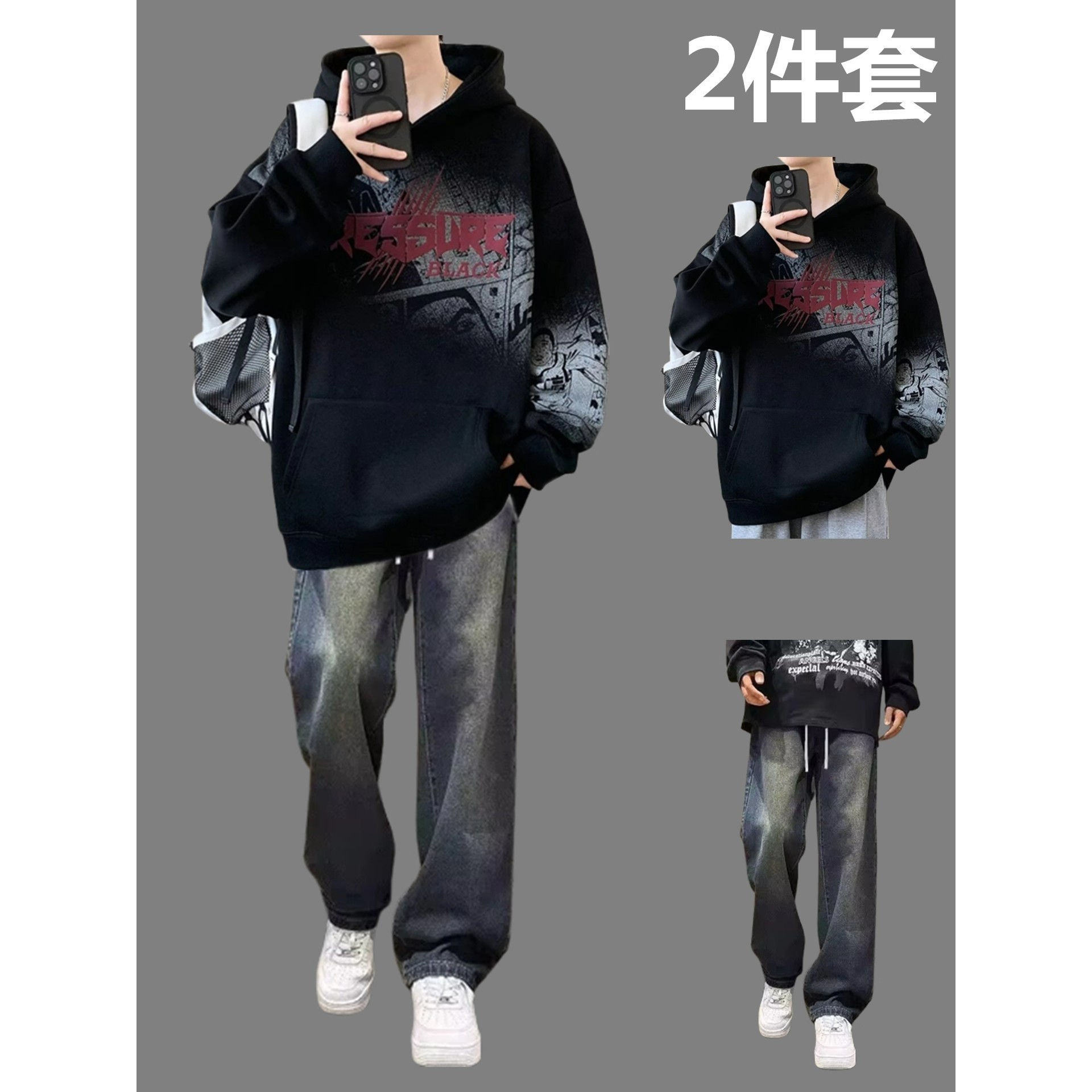 - 卫衣套装男秋冬加绒
