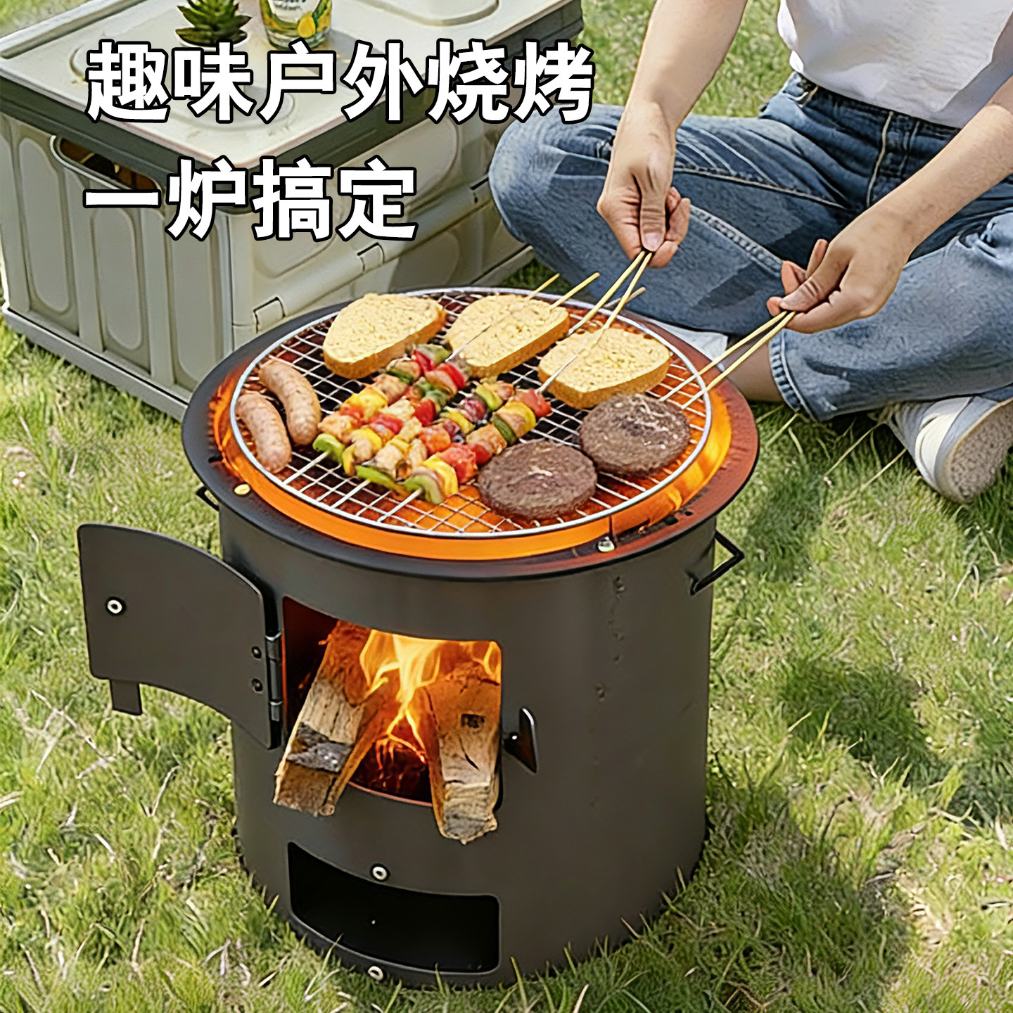 户外柴火炉子新款柴火灶烧木柴围炉煮茶家用便携野外炉灶露营炊具