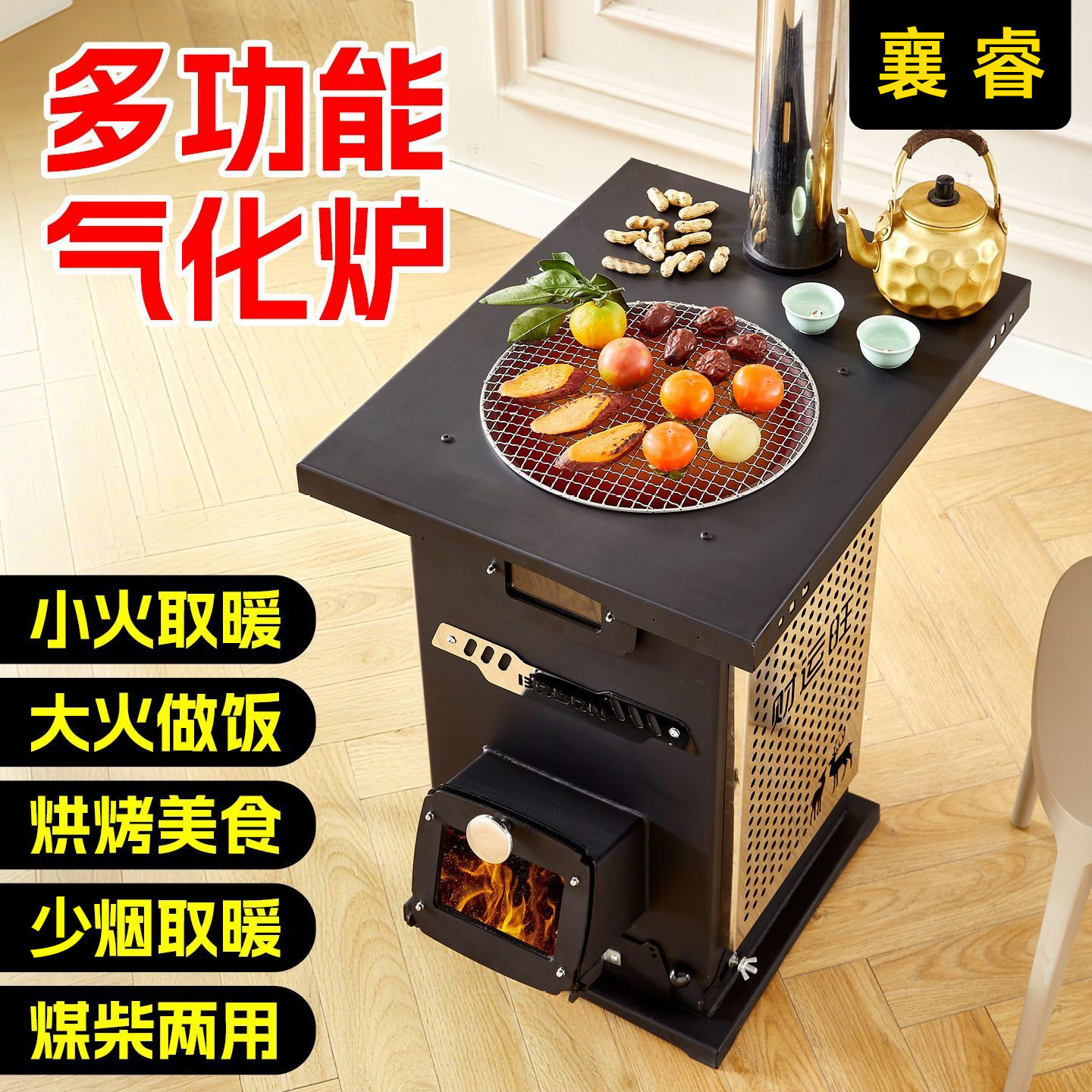 新型柴火气化炉家用柴煤两用取暖炉不锈钢农村烤火炉室内柴火炉子