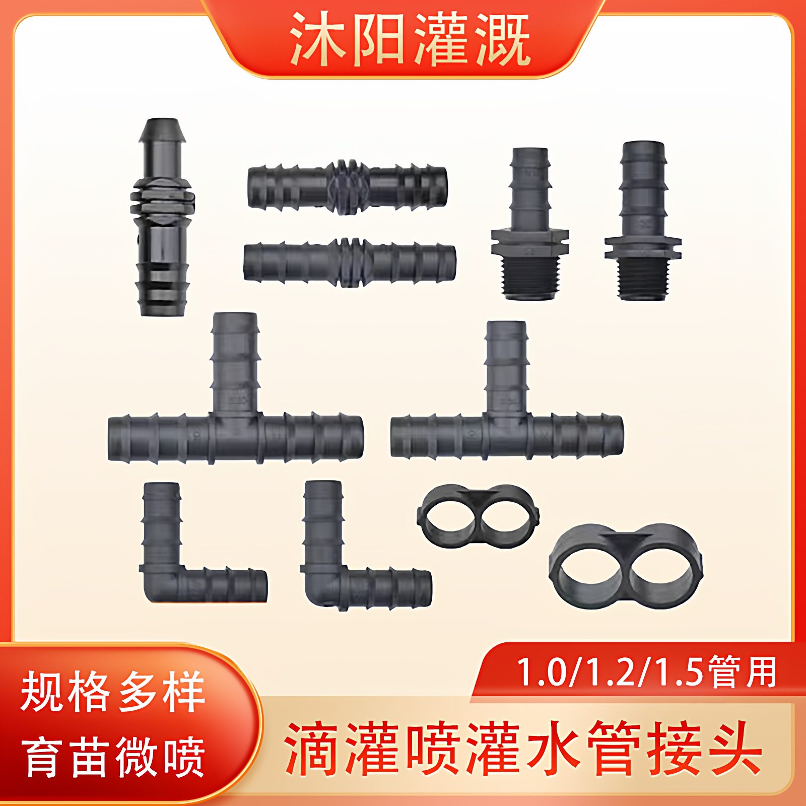PE管配件大全滴灌喷灌简易接头16/20/25倒刺直接弯头三通堵头管件