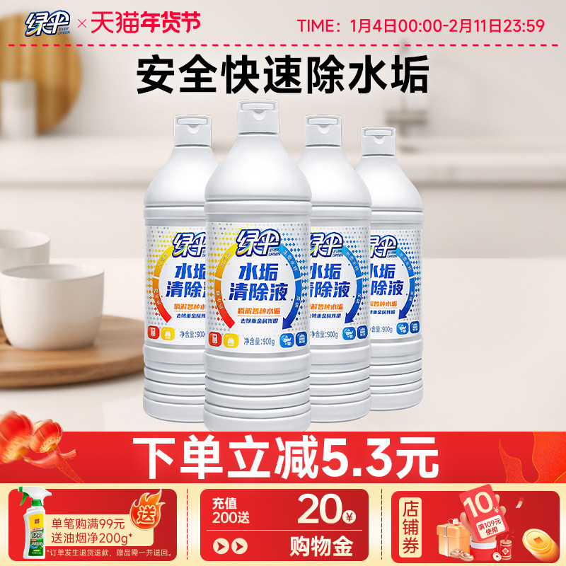 绿伞水垢清除剂4瓶电水壶除垢剂去除水垢茶渍热水器太阳能清洗剂