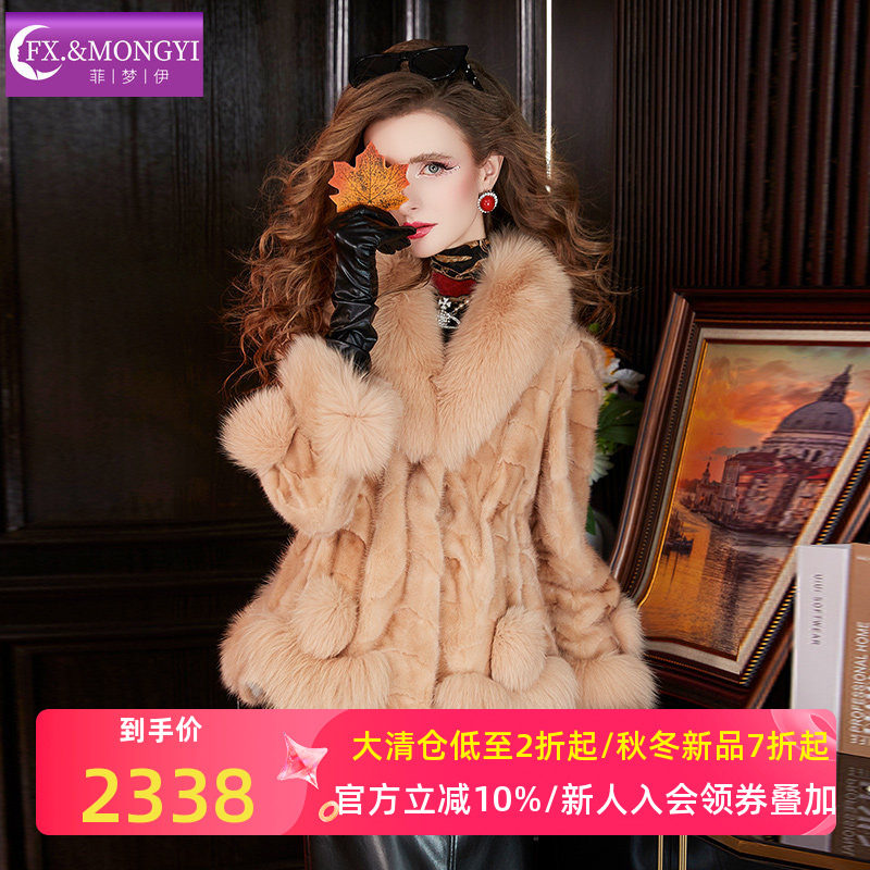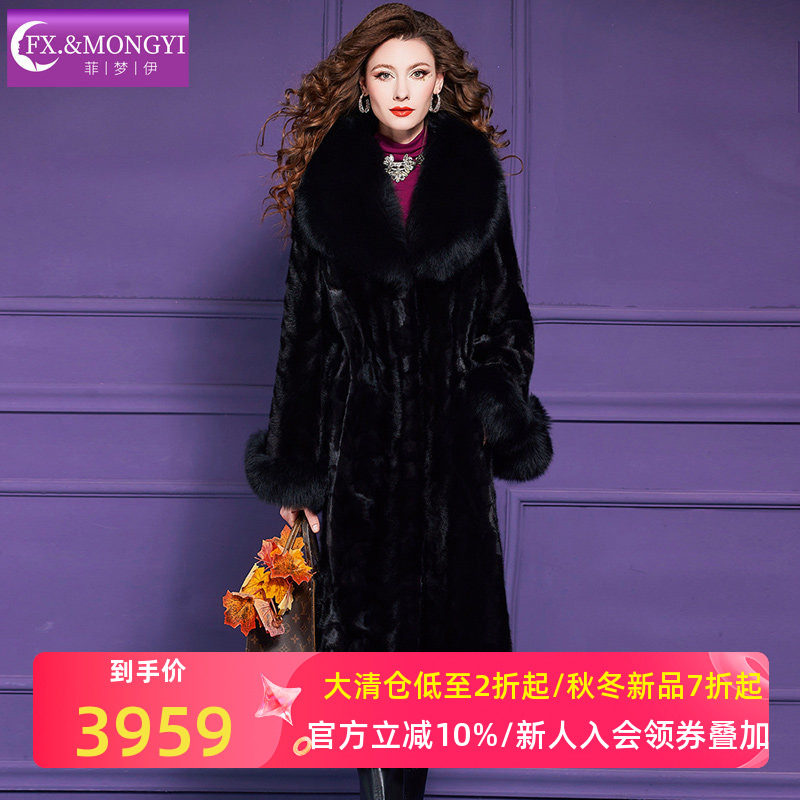 菲梦伊狐狸毛领水貂毛整貂皮草外套女冬季高档加厚中长款贵妇大衣
