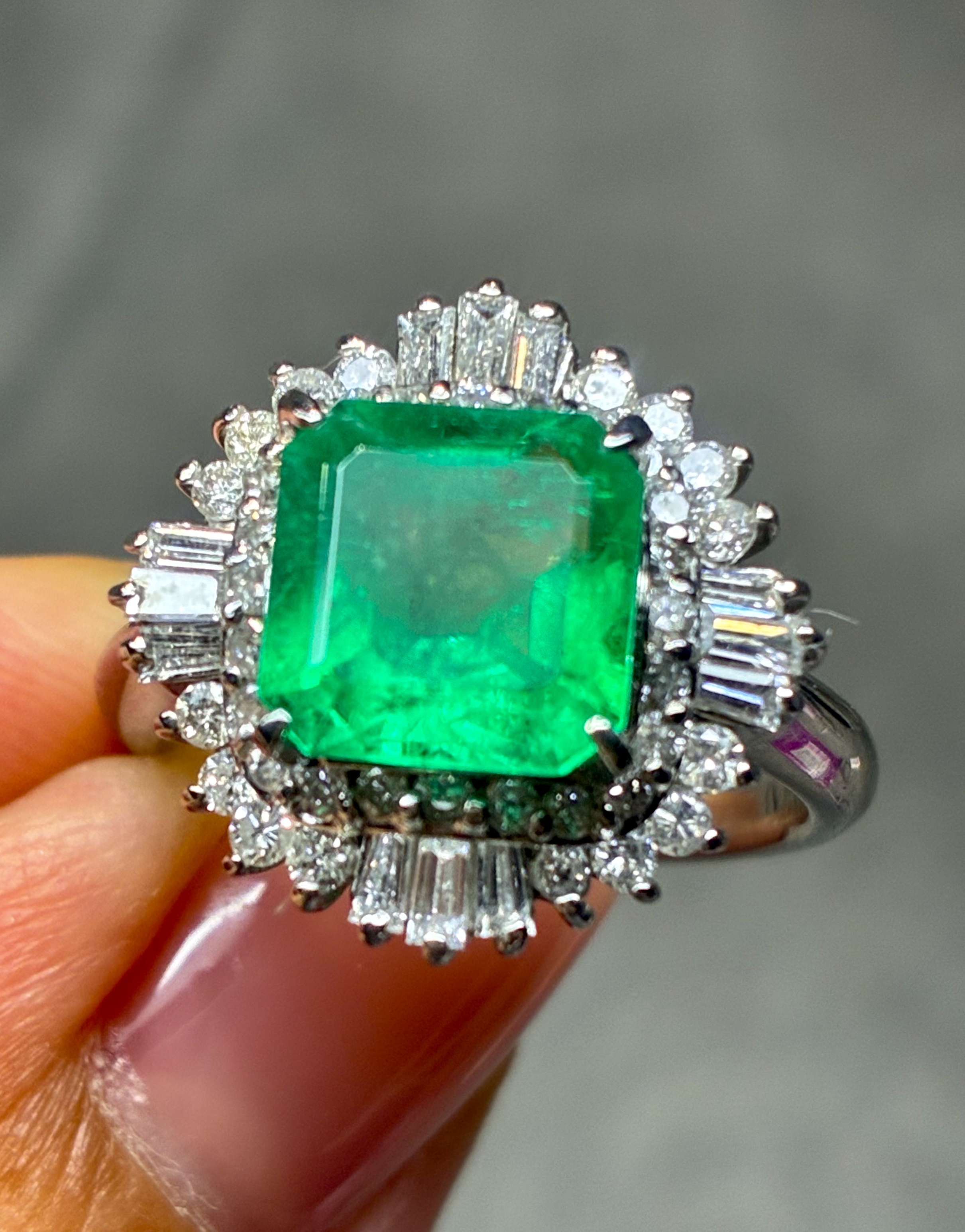 定金 1万多 无油既视感 2克拉哥伦比亚祖母绿Pt900铂金钻石戒指
