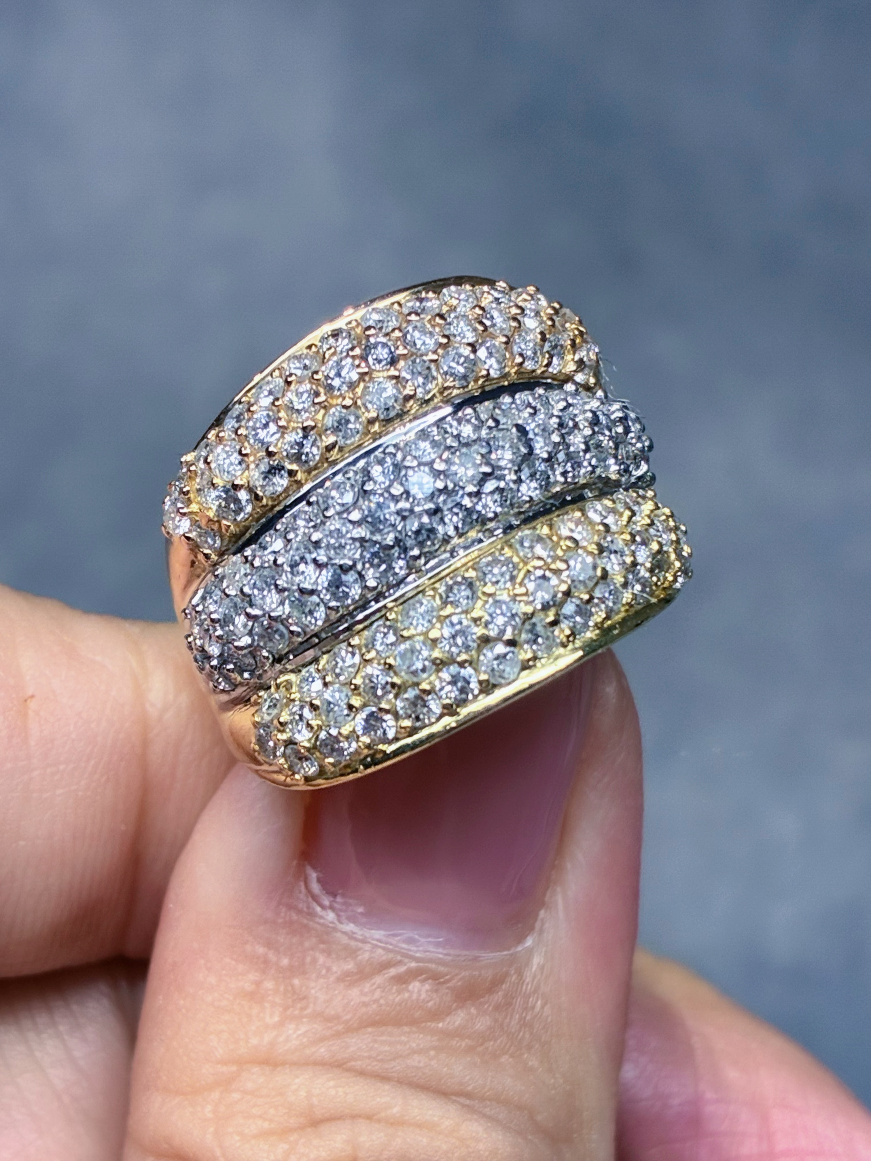 定金链接不退换18K双色金加Pt900重工9克2克拉天然钻石排钻戒指