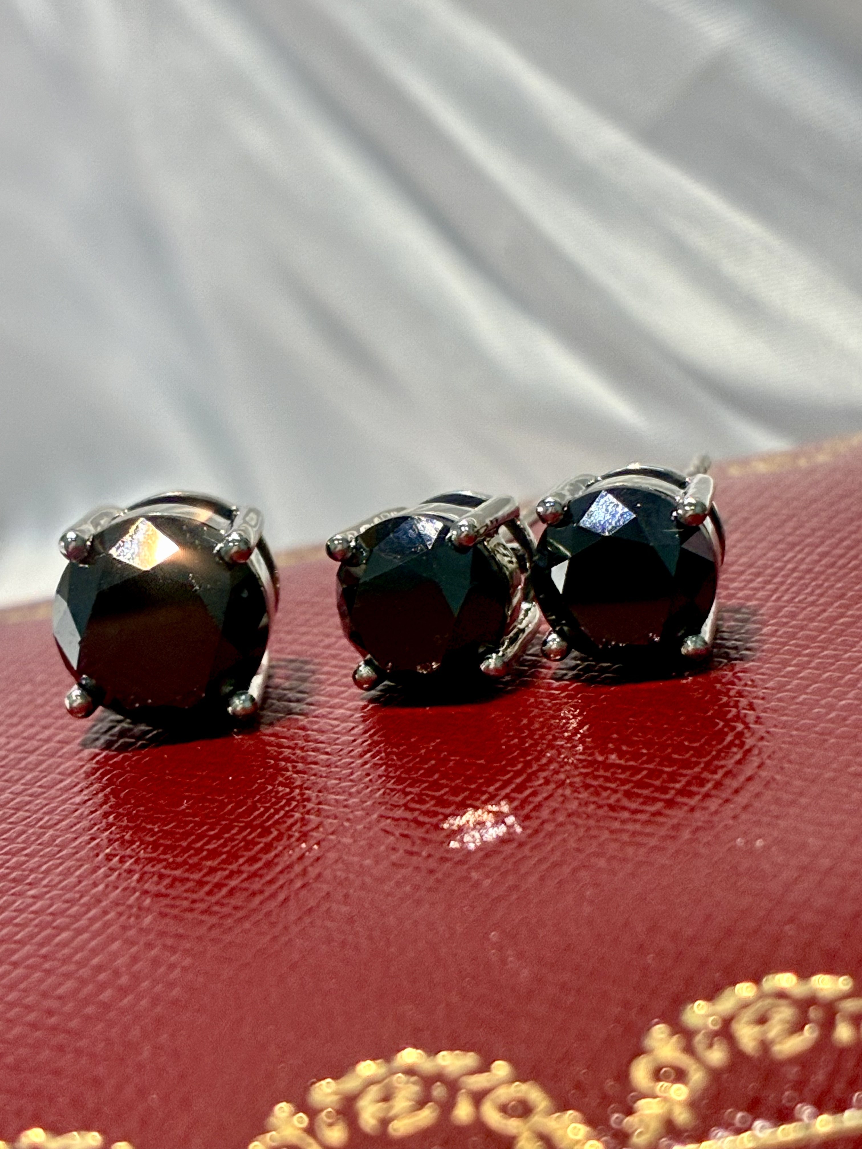 一颗3.38克拉 四位数亏本卖 超大天然黑钻石耳钉Pt经典四爪男女款