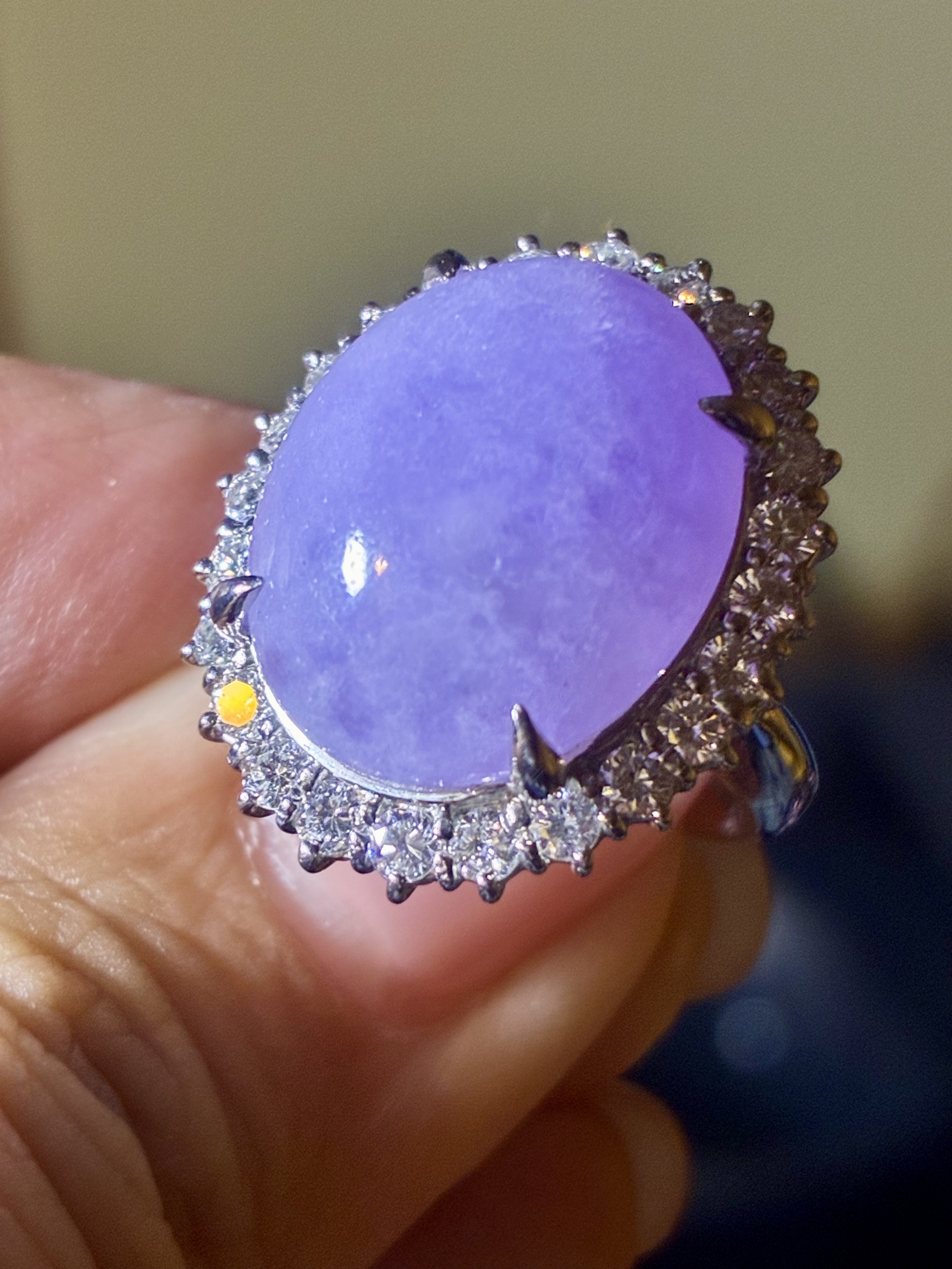 定金 亏本卖中千捡漏 缅甸紫翡翠钻石戒指Pt冰紫色日常佩戴小精品