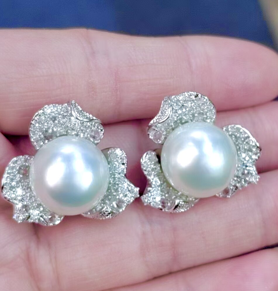 小万捡漏一对14mm高品质澳白钻石耳钉14克多Pt镶嵌钻石和白蓝宝石