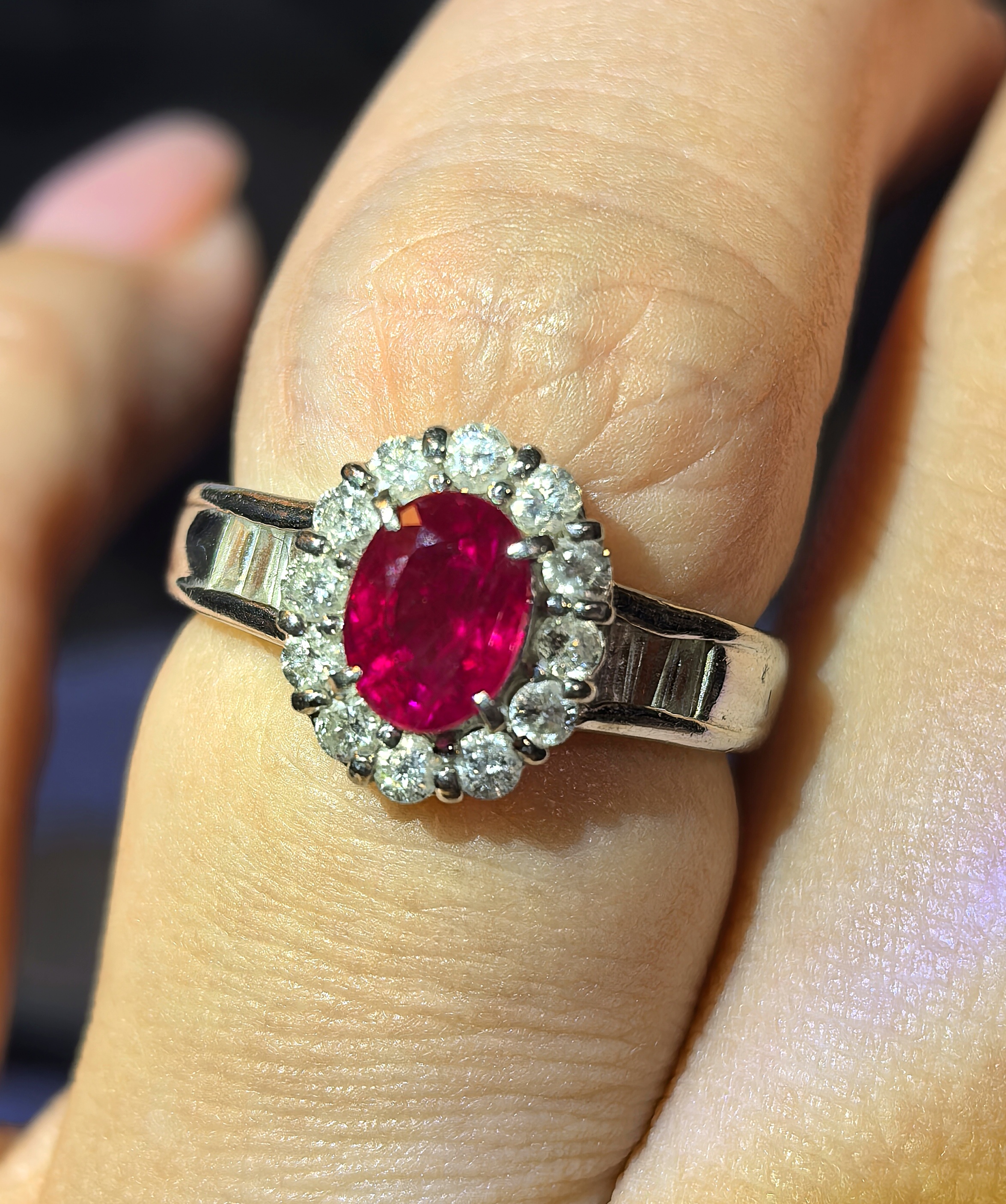 定金 帮日本公司朋友亏本卖 缅甸鸽血红红宝石1克拉Pt900钻石戒指