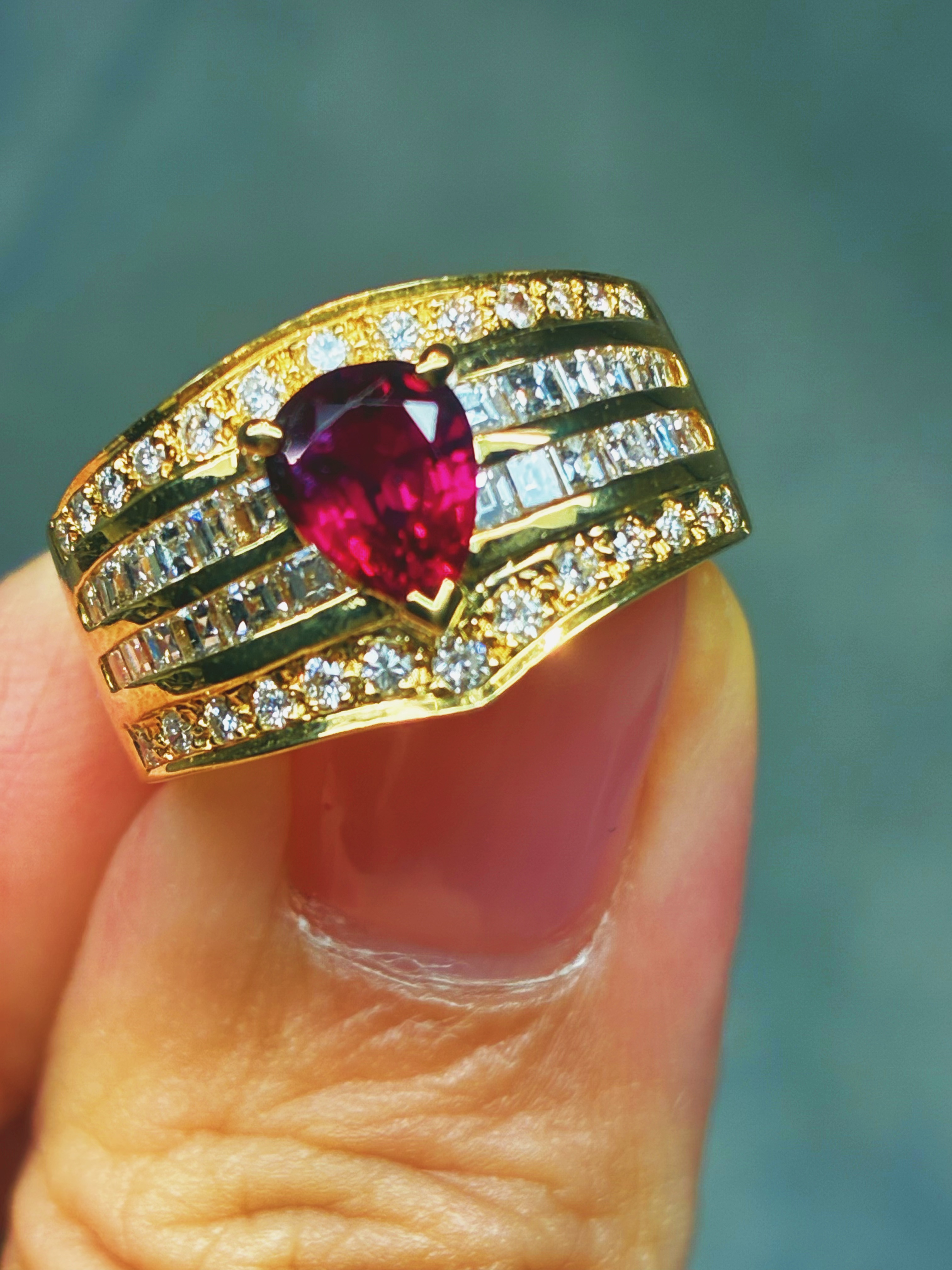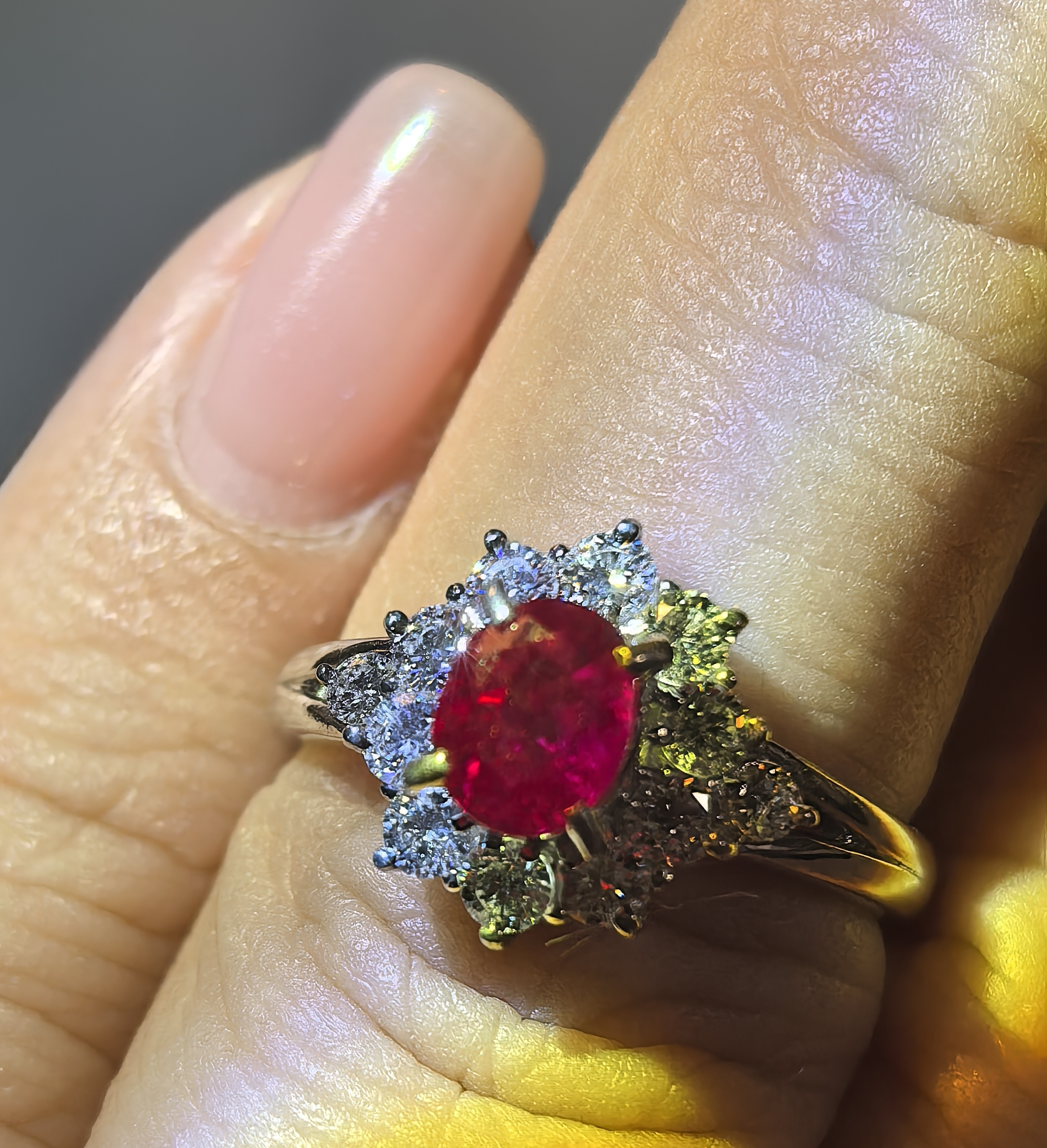 定金链接不退换1.08克拉甜鸽血红宝石钻石戒指18k黄金8克多钻92分