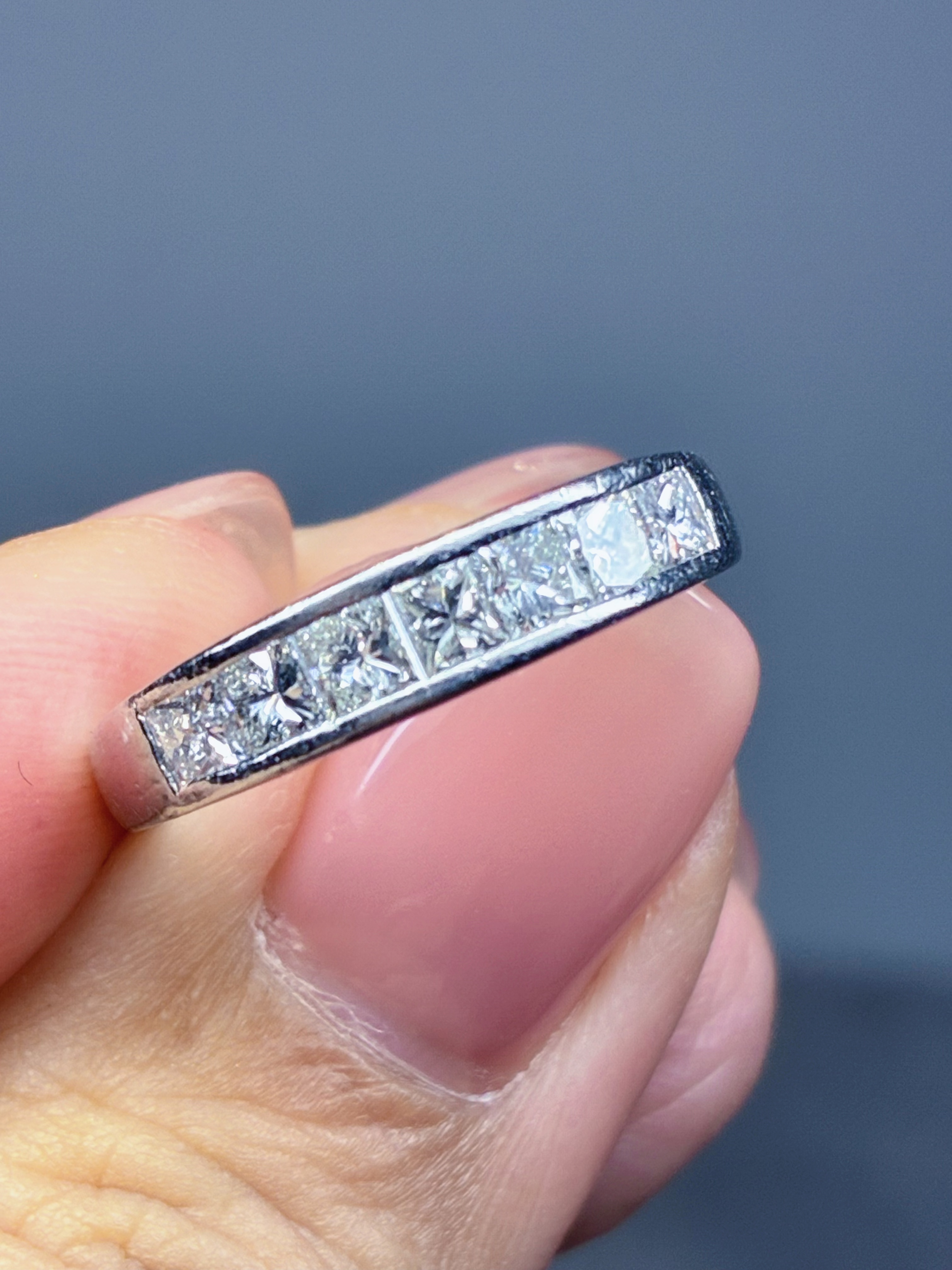 定金链接不退换Pt900重4.7克1克拉公主方切割天然钻石排钻戒指