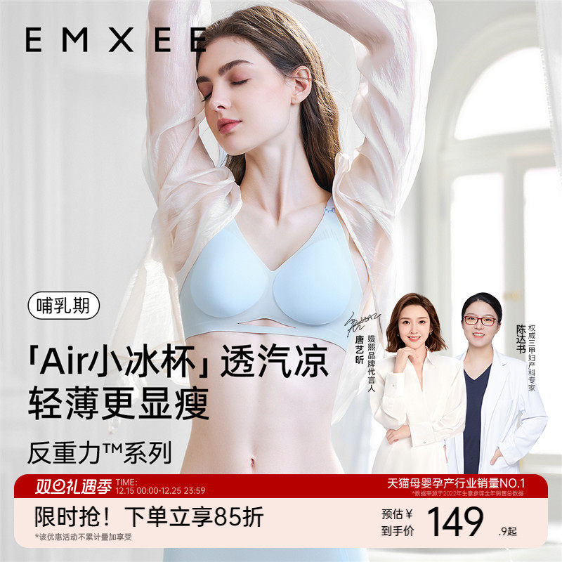 嫚熙反重力Air小冰杯孕妇透气哺乳内衣防下垂专用喂奶文胸秋薄款