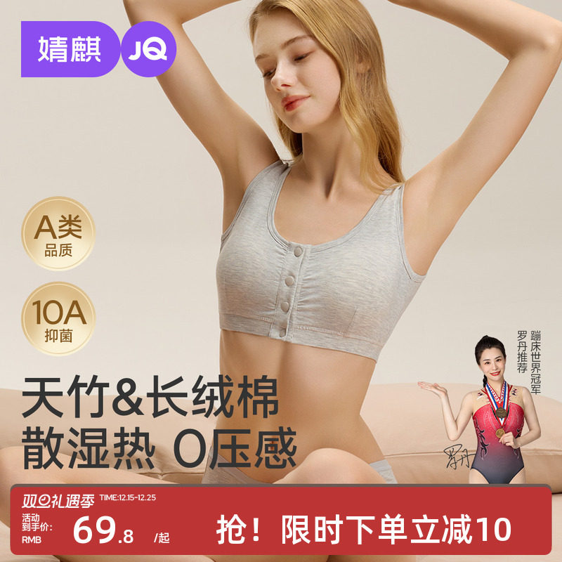 婧麒前开扣背心式睡眠内衣无钢圈舒适无痕居家怀孕期产后喂奶文胸