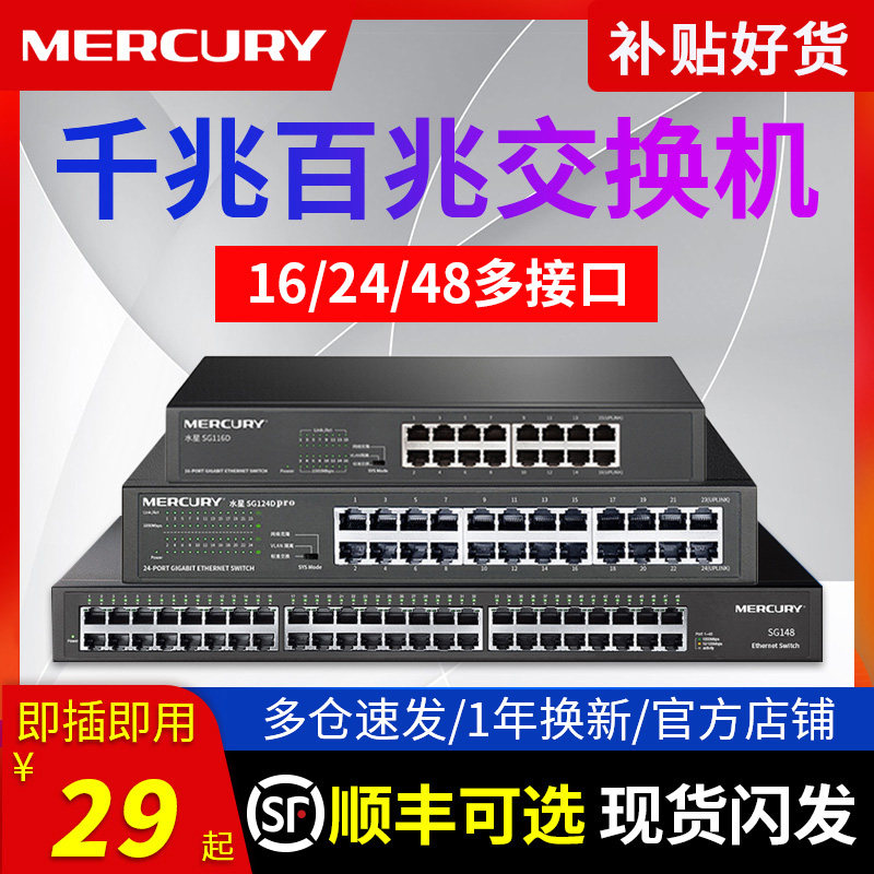 水星16口24口48口千兆交换机5口8口百兆网络分配器网线分线器家用企业宿舍路由器监控摄像头机架分流器集线器