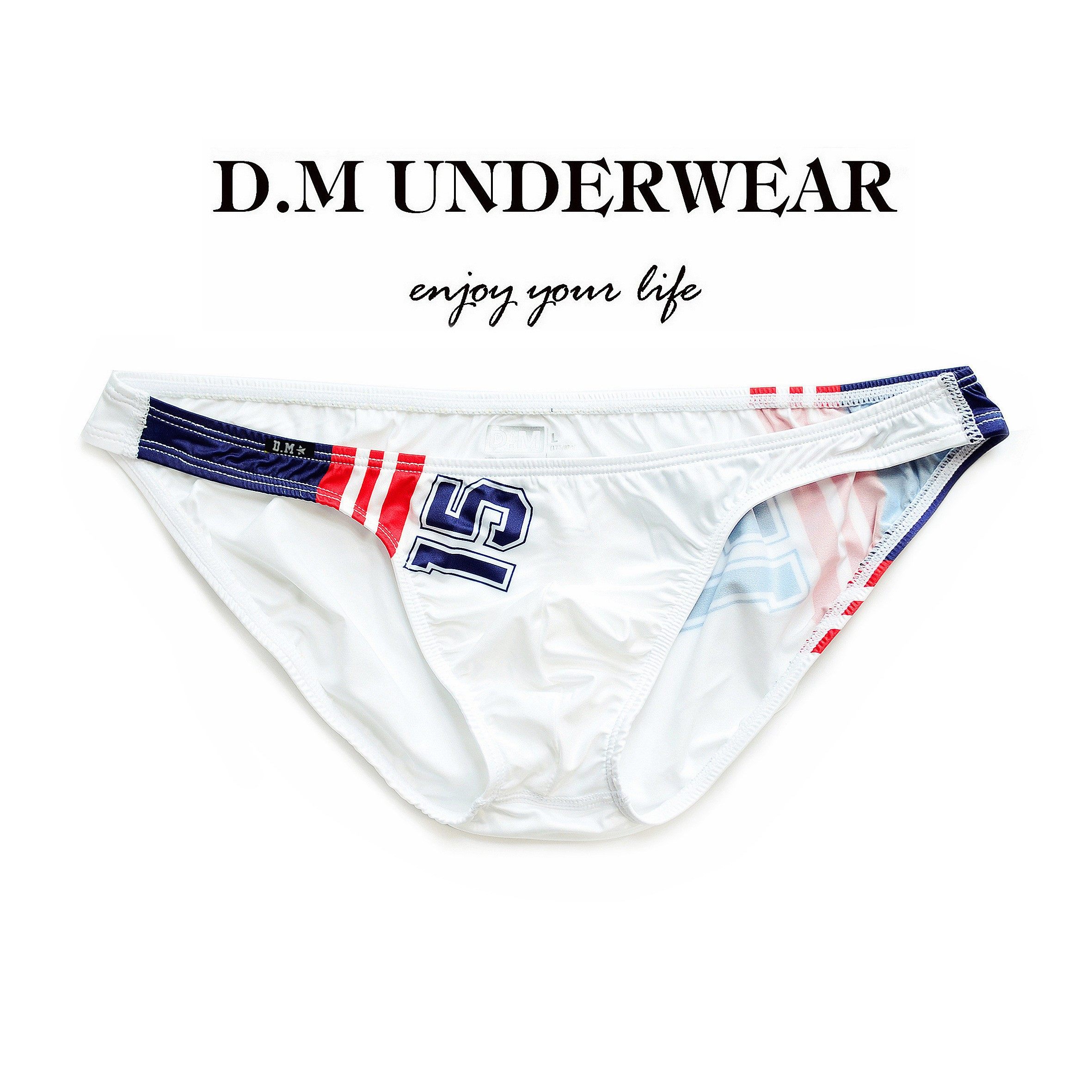 D.M男内裤 字母15性感低腰三角裤吸汗透气夏牛奶丝冰丝薄比基尼