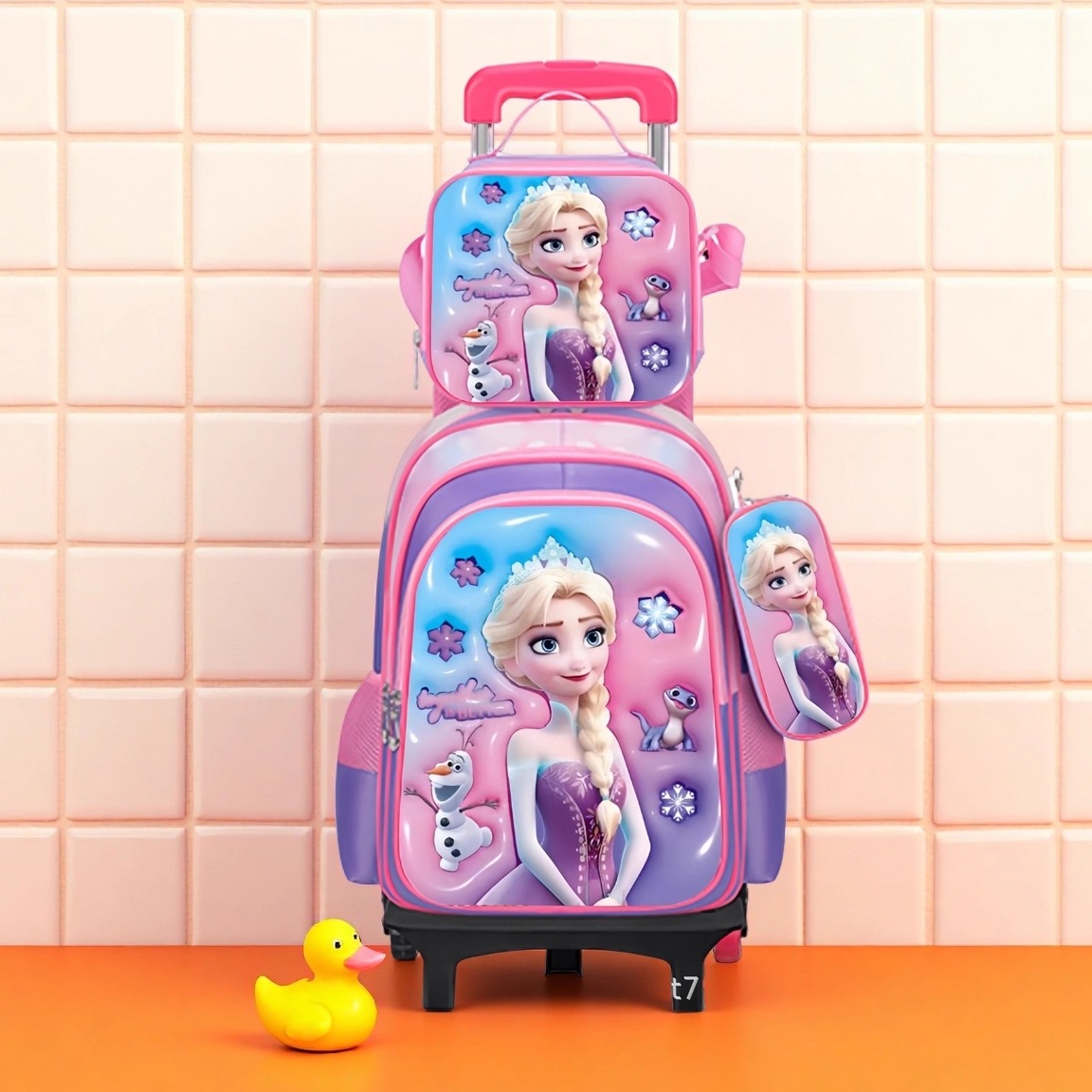 爱莎公主小学生拉杆书包3~6年级卡通三件套两轮轻便儿童书包elsa