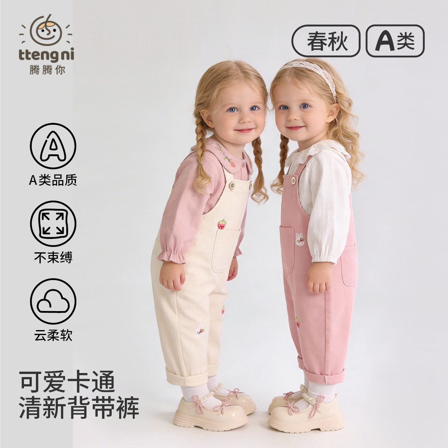 婴儿背带裤女童休闲裤子春秋0一3-4岁萌兔小草莓宝宝连体衣服纯棉