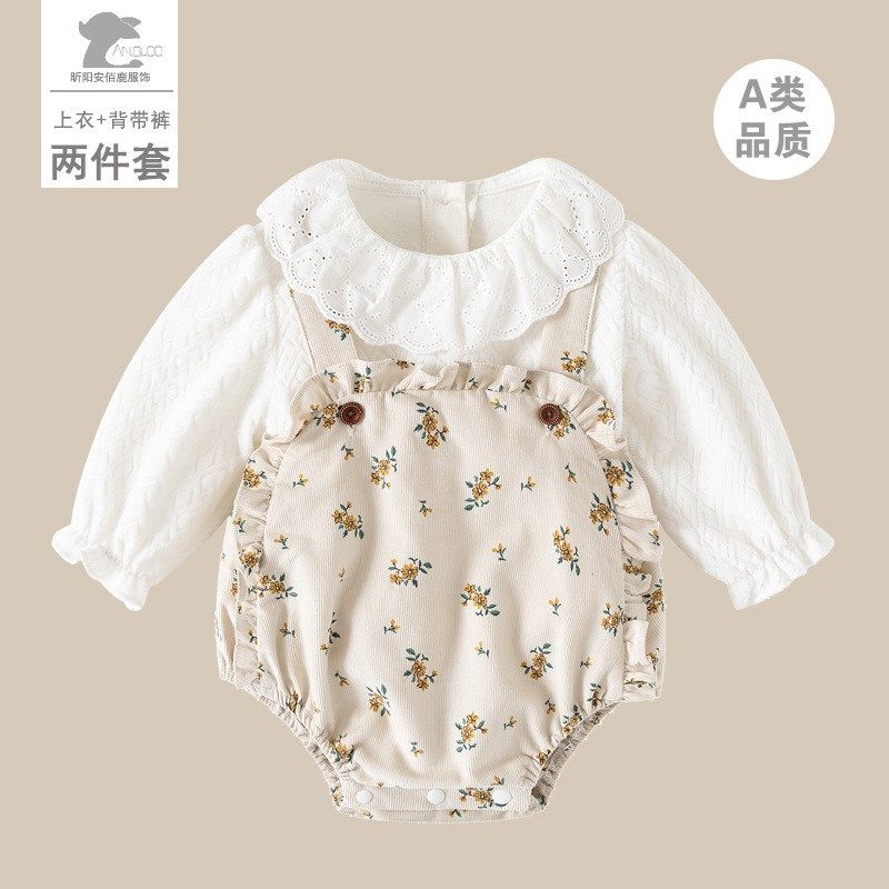 婴儿背带裤女宝宝超洋气套装婴幼儿秋装连体衣满月爬服秋冬季衣服