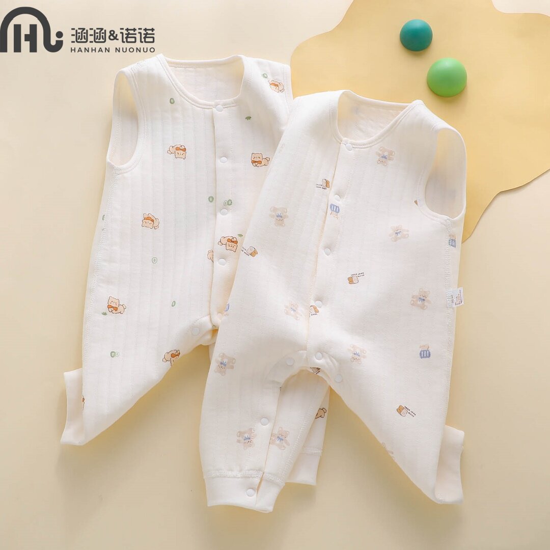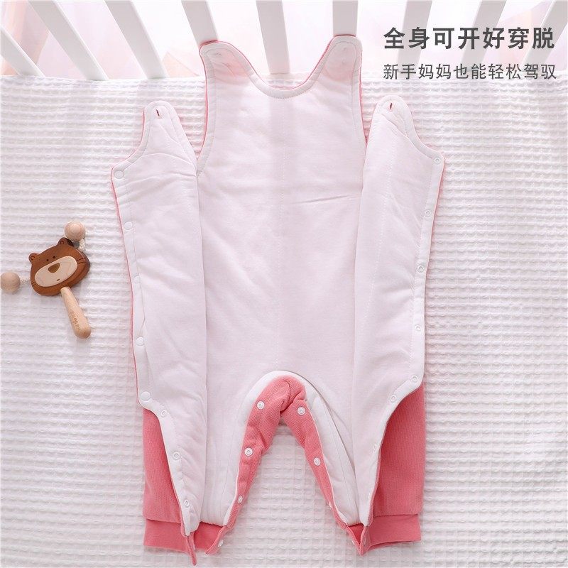 男宝宝背心连体衣秋冬夹丝哈衣女宝加厚保暖连身衣服婴儿背带裤子