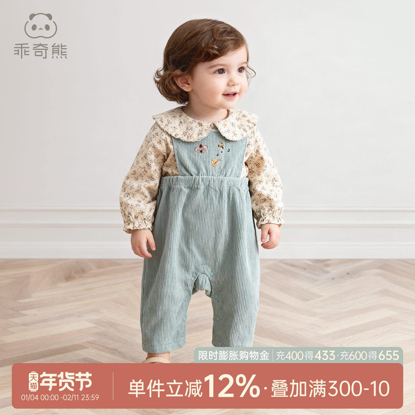 乖奇熊婴儿背带裤秋冬季男女宝宝灯芯绒保暖裤纯棉外穿连体长裤子