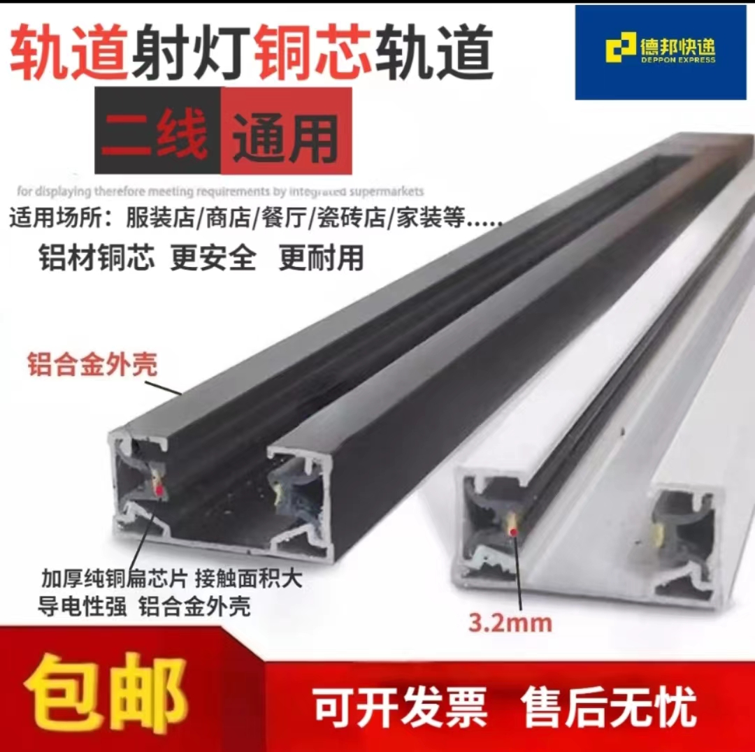 妙朗两线1米2m0.5米led射灯轨道灯轨道条导轨条铝材铜导线轨道槽