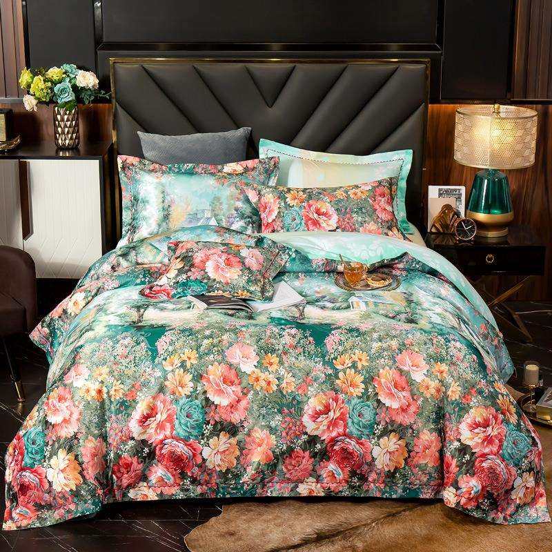 新中式高端数码印花四件套160支全棉纯棉被套单奢华高档床上用品