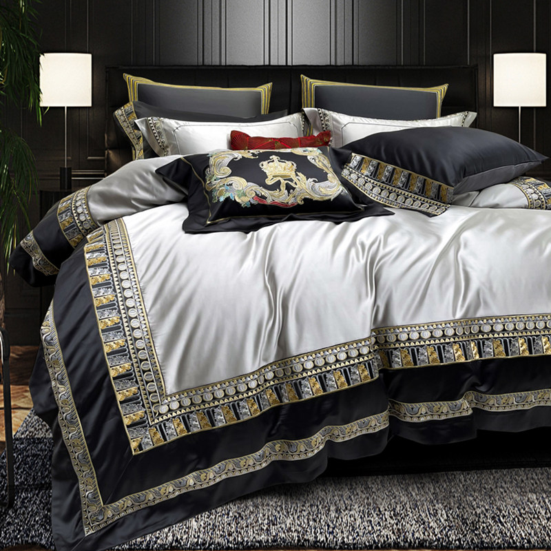 高档别墅刺绣床上用品四件套 欧式奢华丝质纯棉轻奢被套床单锦缎