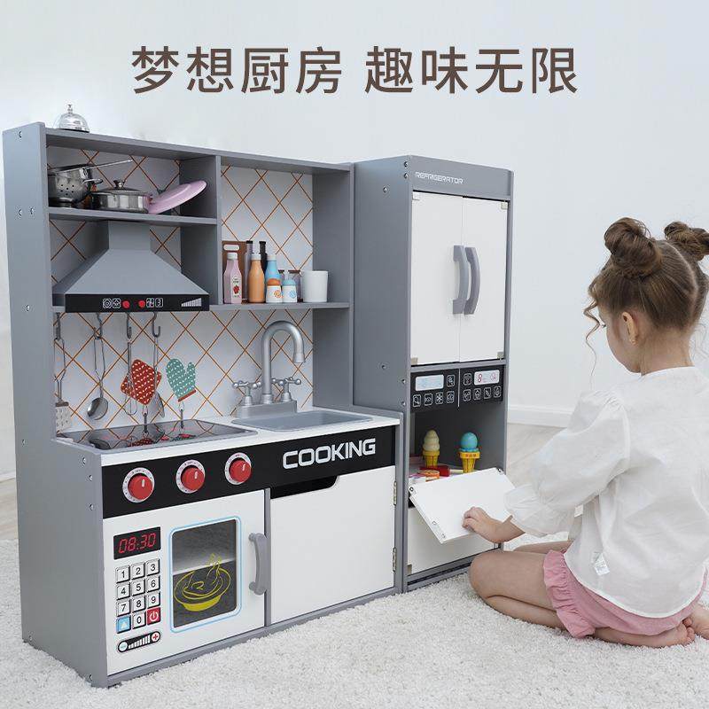 儿童过家家厨房玩具套装组合男孩女孩做饭仿真木制厨具冰箱可出水