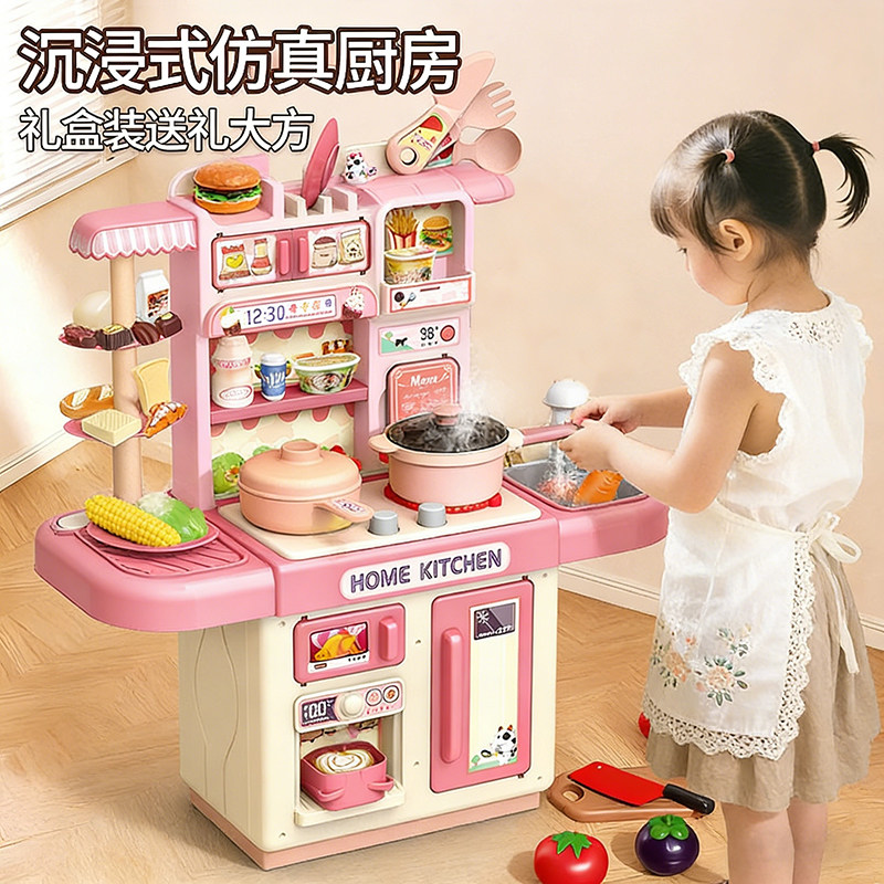 95cm超大型儿童过家家厨房玩具套装女孩宝宝做饭男孩真出水喷雾