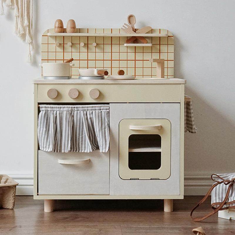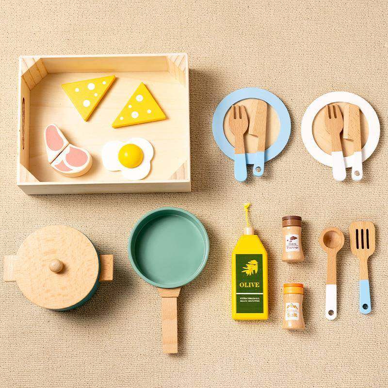 木质女孩过家家厨房玩具套装儿童做饭煮饭仿真餐厨具原木厨房玩具