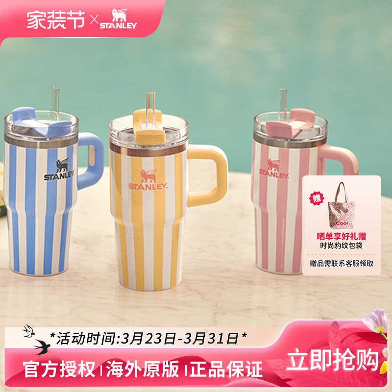 STANLEY吸管杯保温杯条纹水杯子20oz车载不锈钢大容量小巨无霸杯