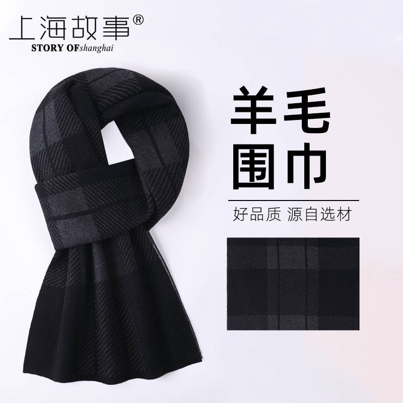 上海故事男士羊毛围巾冬季加厚保暖高档围脖送男朋友爸爸生日礼物