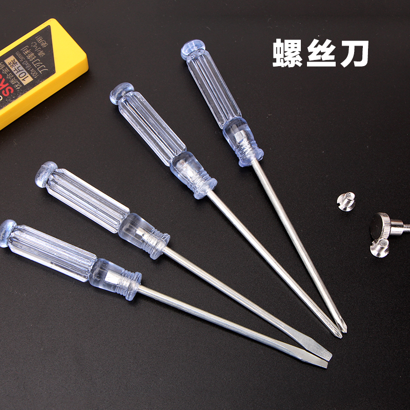 笔记本螺丝刀 水晶透明柄小起子 3寸13cm一字梅花十字平口螺丝批