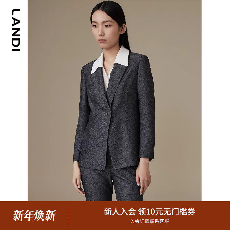 LANDI深灰色重磅高级感修身收腰西服外套女套装西装裤秋新品