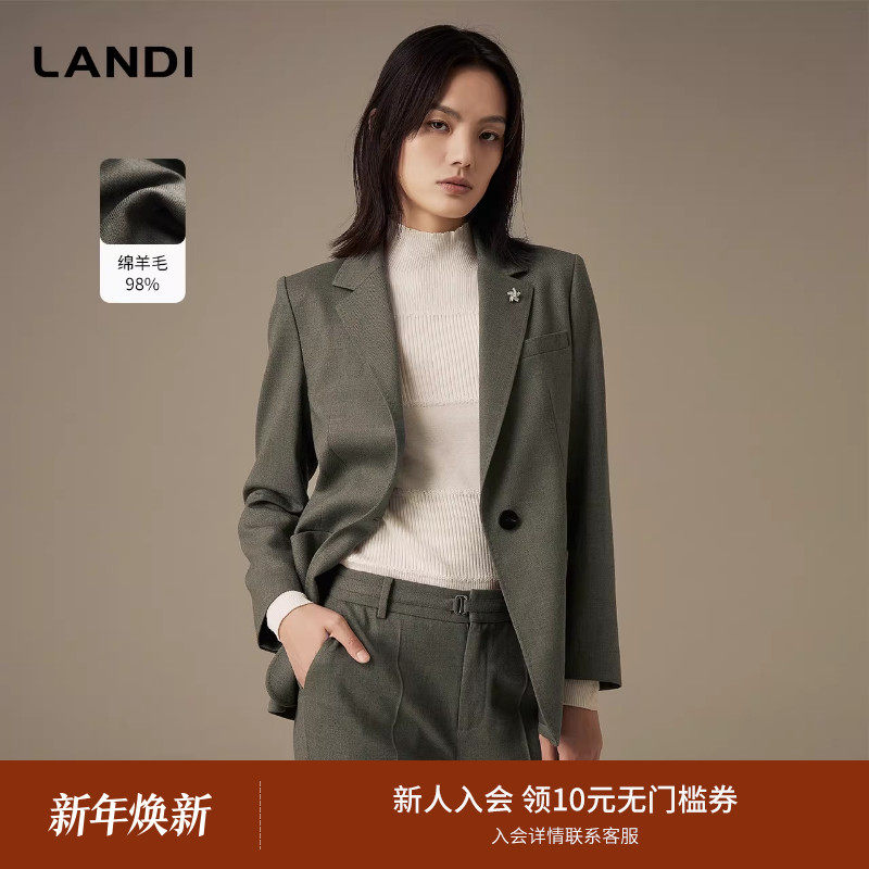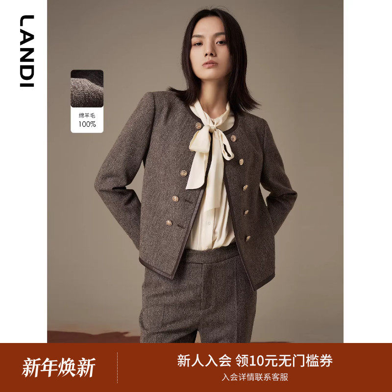 LANDI花纱复古高级感羊毛短款西服外套女套装西装长裤冬新品