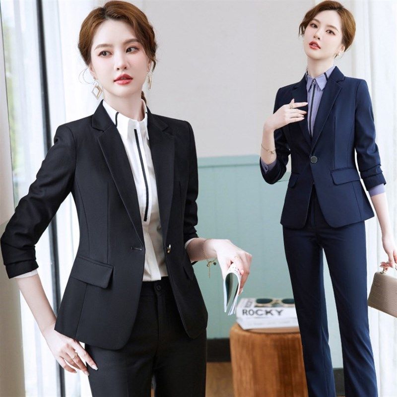 时尚套装女装春秋高端洋气修身显瘦商务免烫西装女大学生面试西服