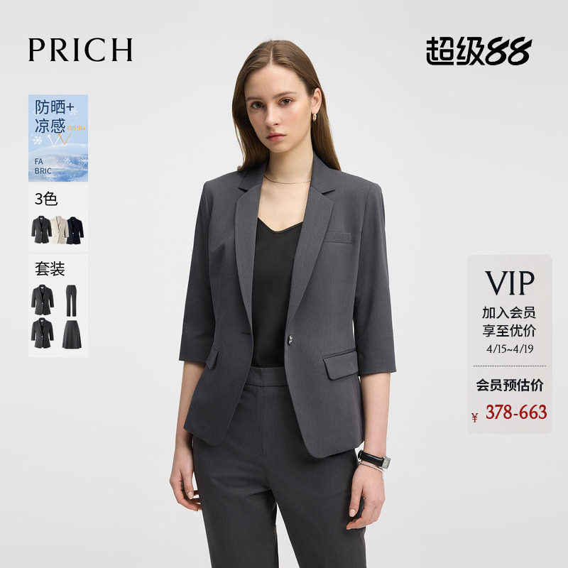 【防晒UPF50+凉感】PRICH气质通勤西装套装夏季外套女