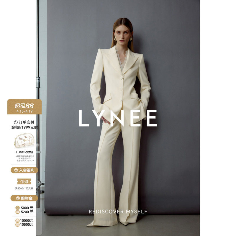 LYNEE X TORIL 醋酸睫毛蕾丝收腰西装套装女高级感西服/喇叭裤